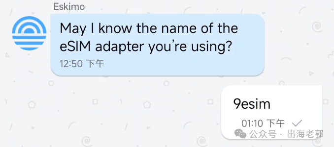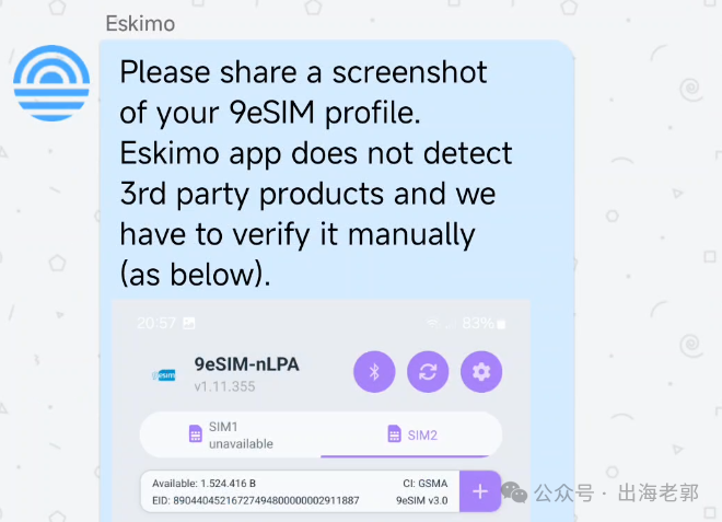 把你的第三方ESIM卡类型发给客服,我直接告诉他用的是9ESIM