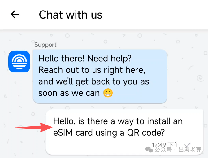 输入这一段话,发给客服,意思是问客服能不能扫描二维码安装【因为手机不支持原生ESIM,只能通过第三方ESIM卡扫码的方式安装】