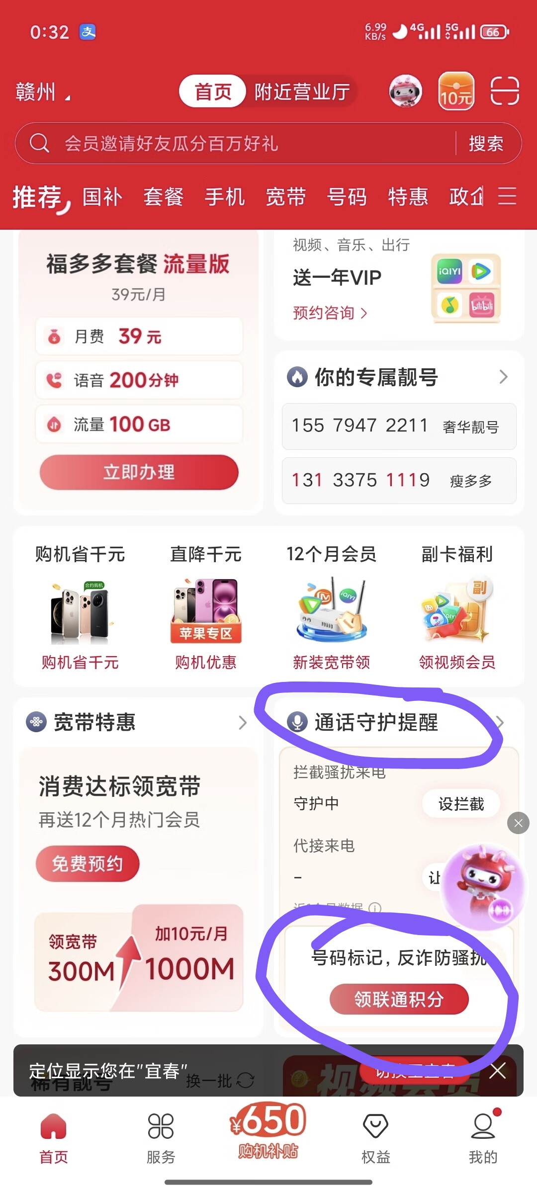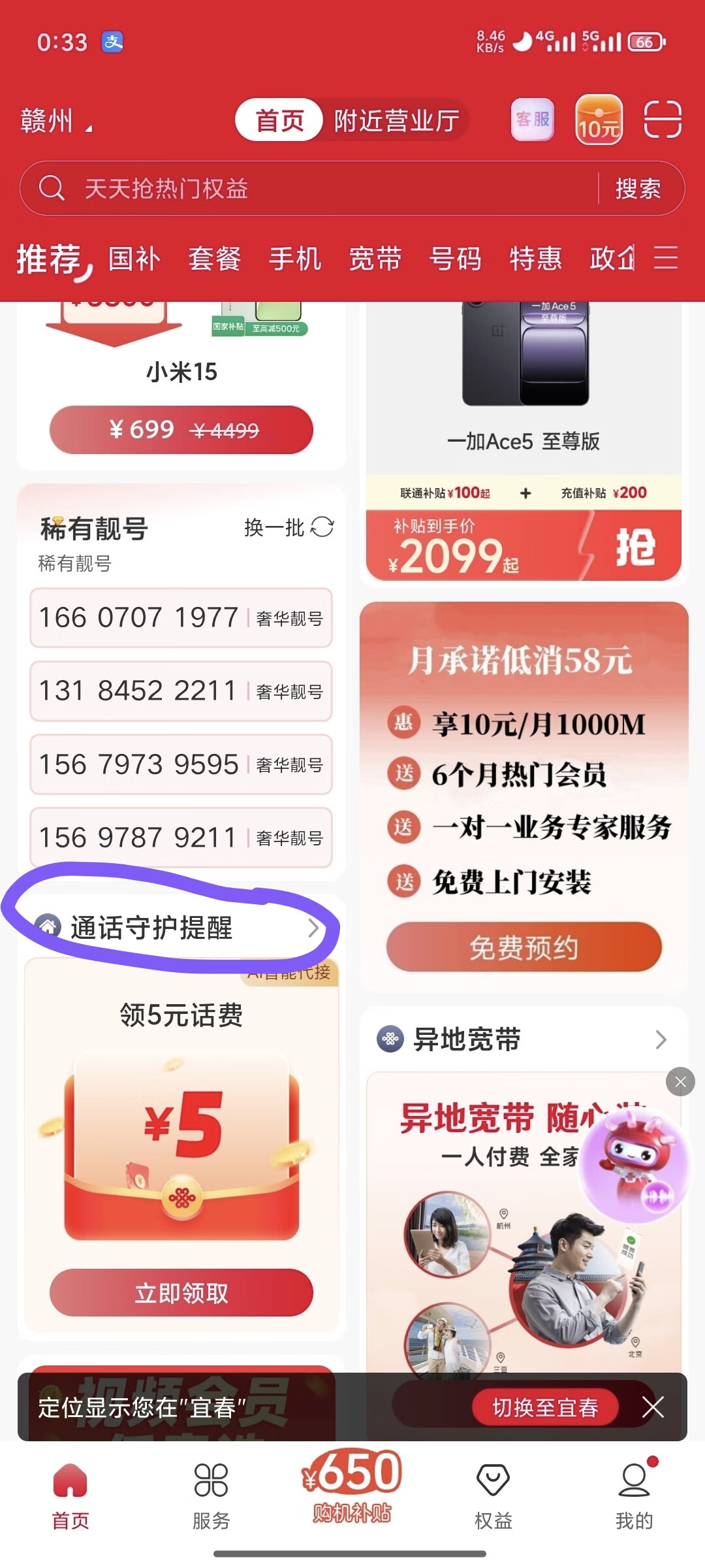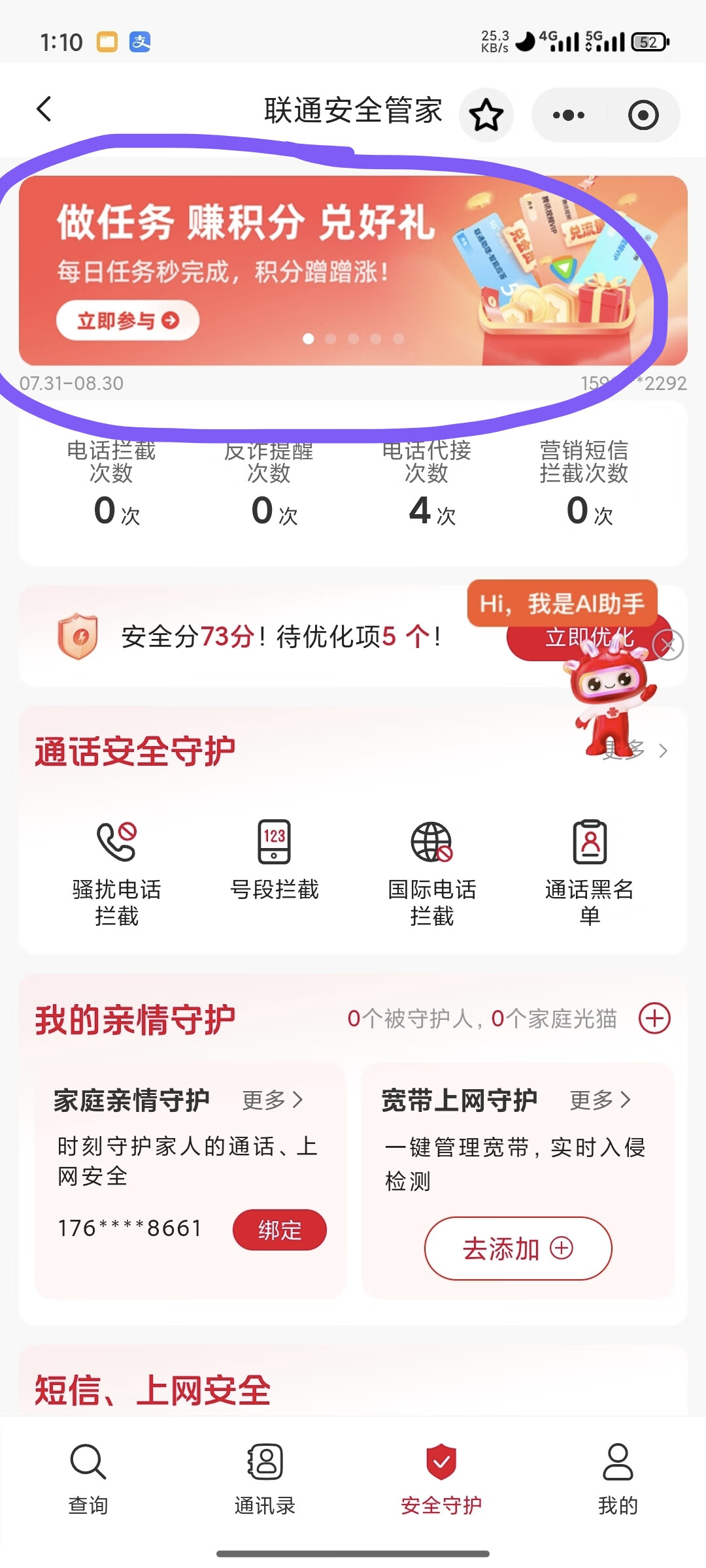 第一步:中国联通app在首页找到 通话守护提醒,自己找一下,有时候会在不同位置