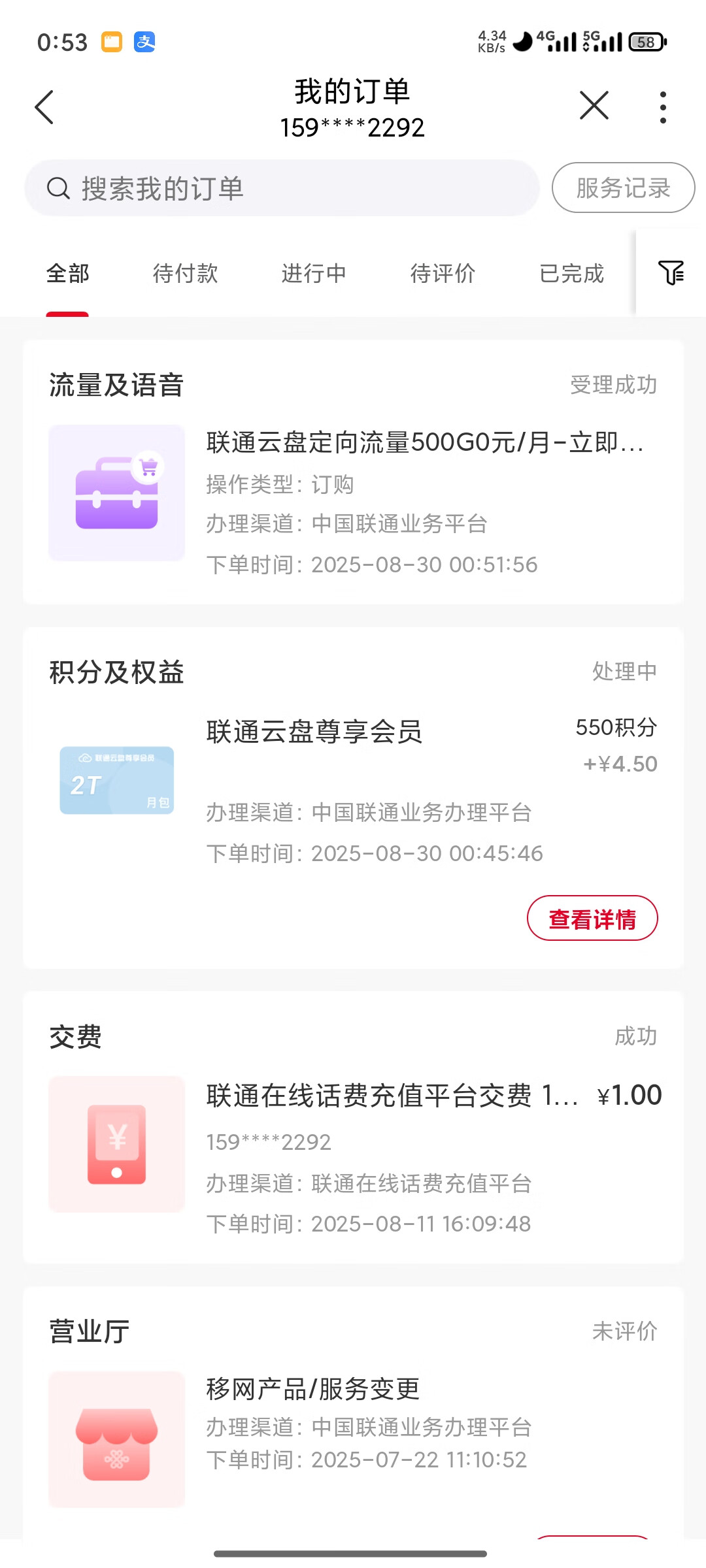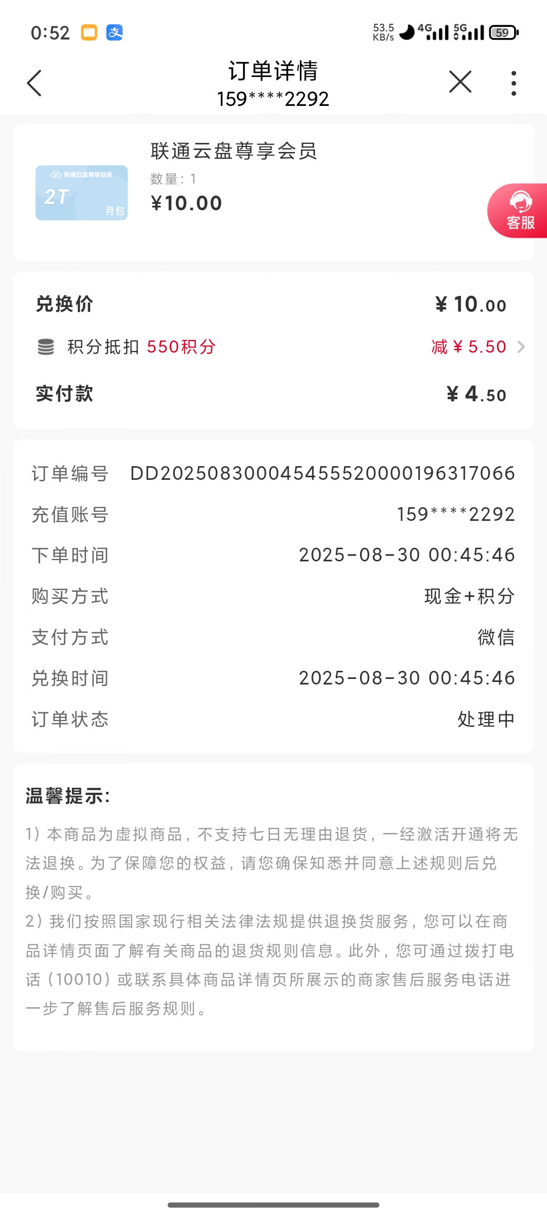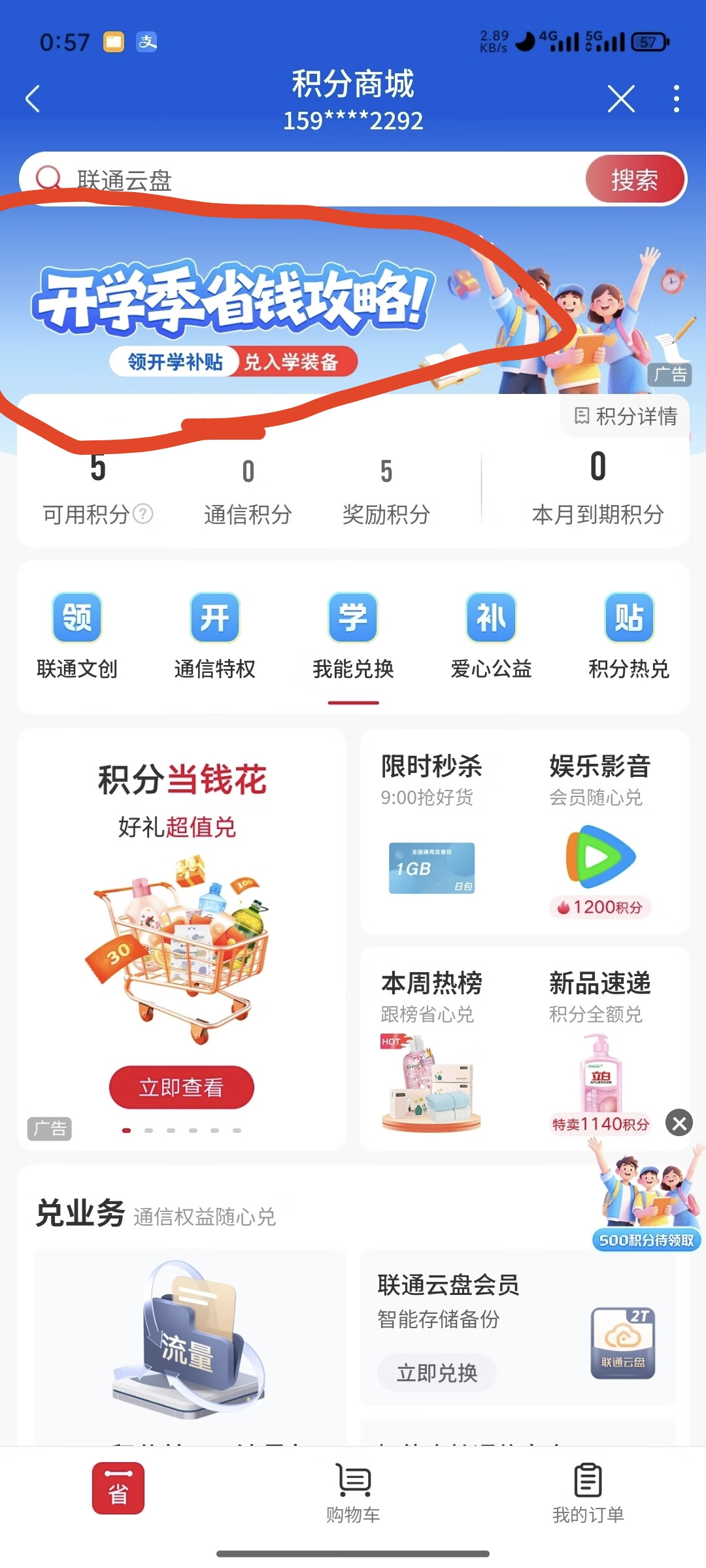免费领联通550积分,4.5元开联通云盘领取500G定向流量