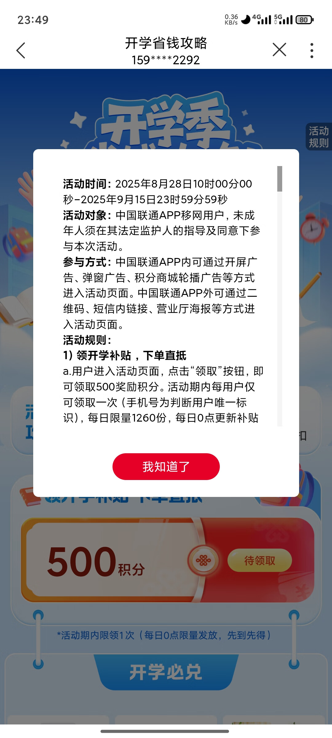 第三步:点击待领取,获得500积分,可用于兑换联通云盘500G免流,也可积分兑换其他物品,积分每天0点更新补贴,活动时间到9月15日。目前0点很容易抢到500积分,今晚我领了4个号。