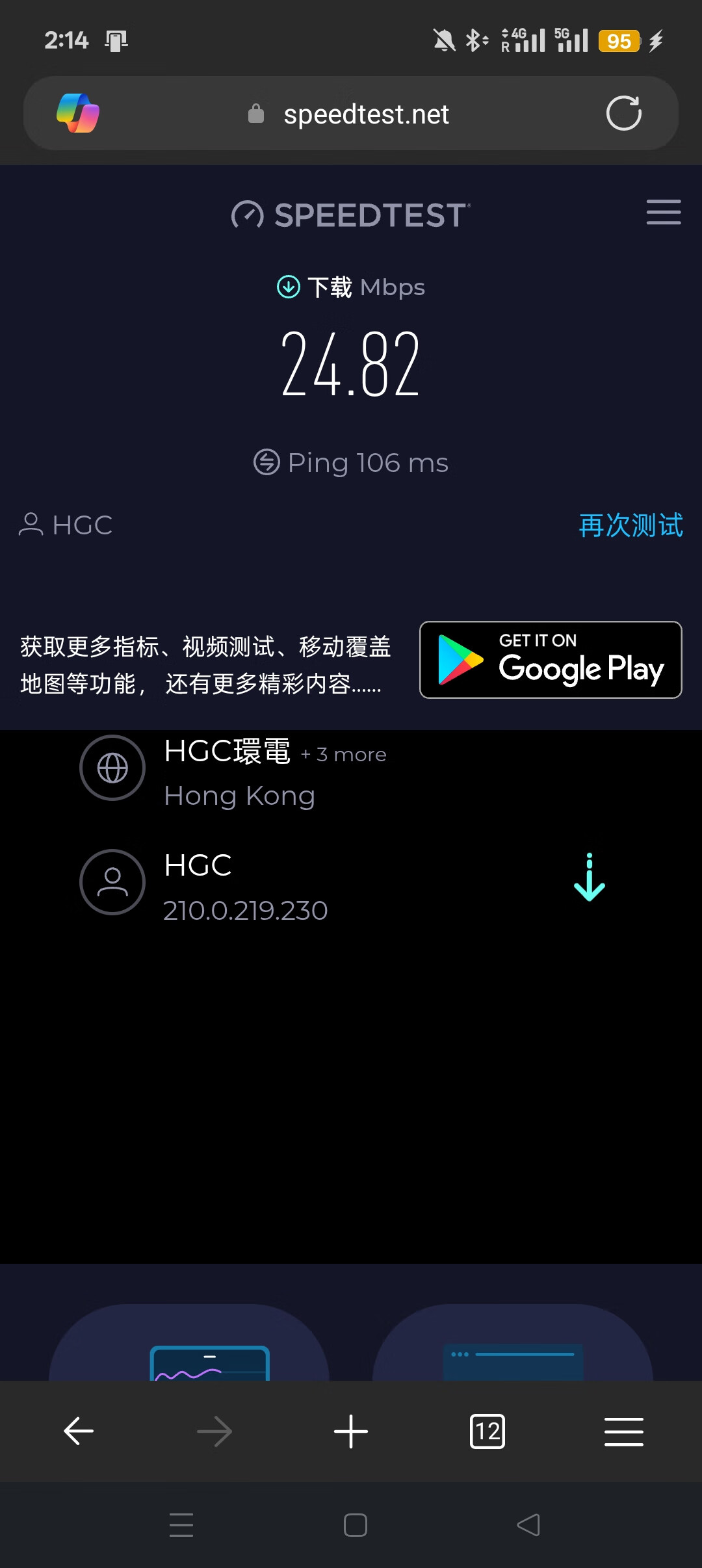 个人使用体验后认为4G速度还算不错,可以流畅访问Google等网站。(Google 位置不对 )