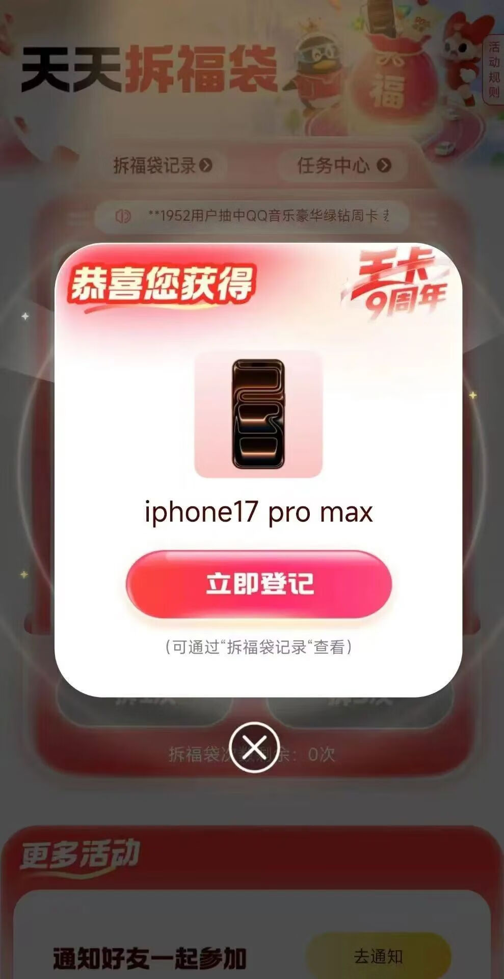 amoy 发表于 2025-11-1 18:42 我的朋友中了个iPhone17pm