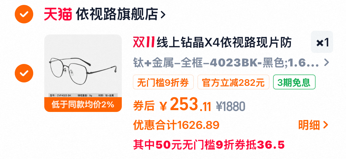 nyarime 发表于 2025-11-10 23:44 蔡司线下眼睛店从2.4k-4k价格不等,镜片可以给到6折