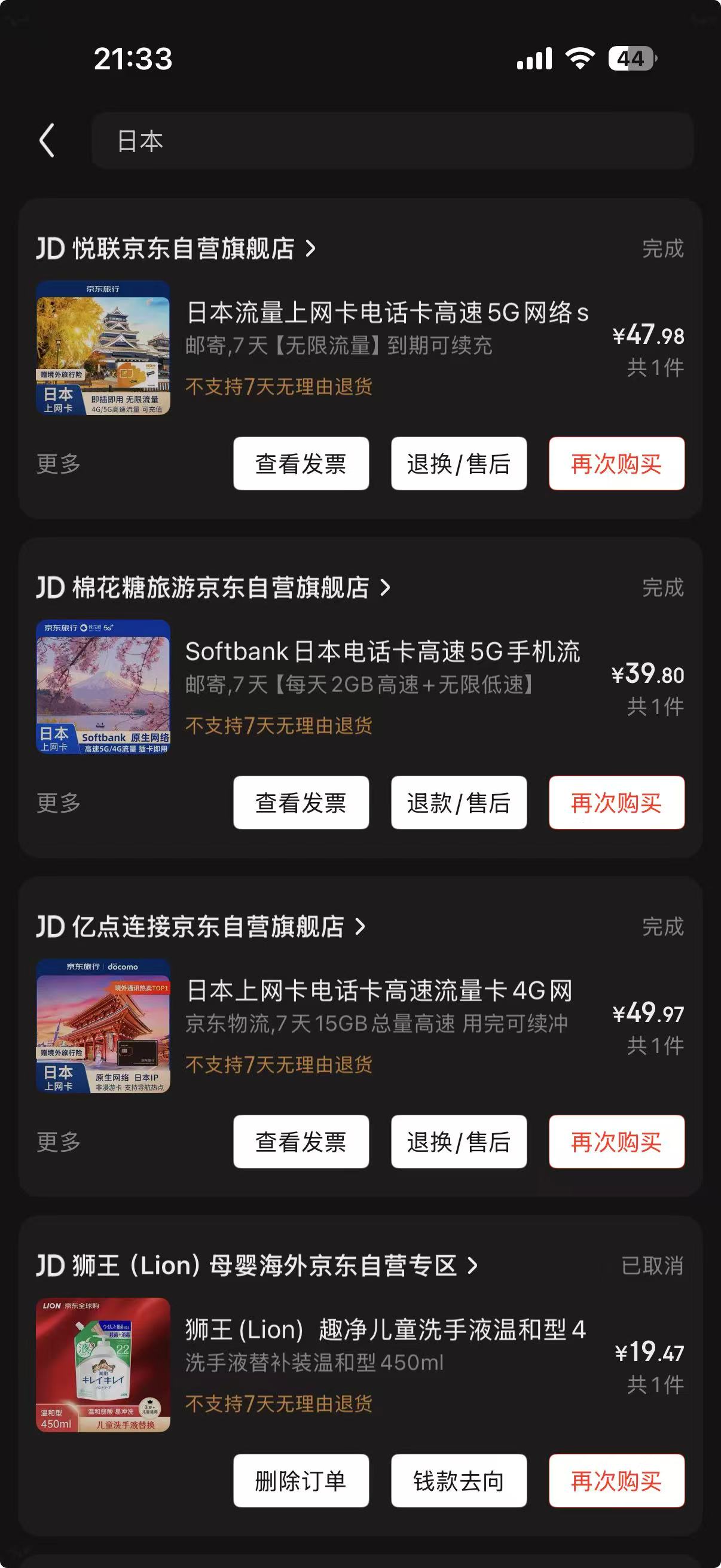 为啥还没买你们的实体卡便宜呀,上次在京东买的你们店铺的日本7天15G是49,相同套餐买ESIM要五十多